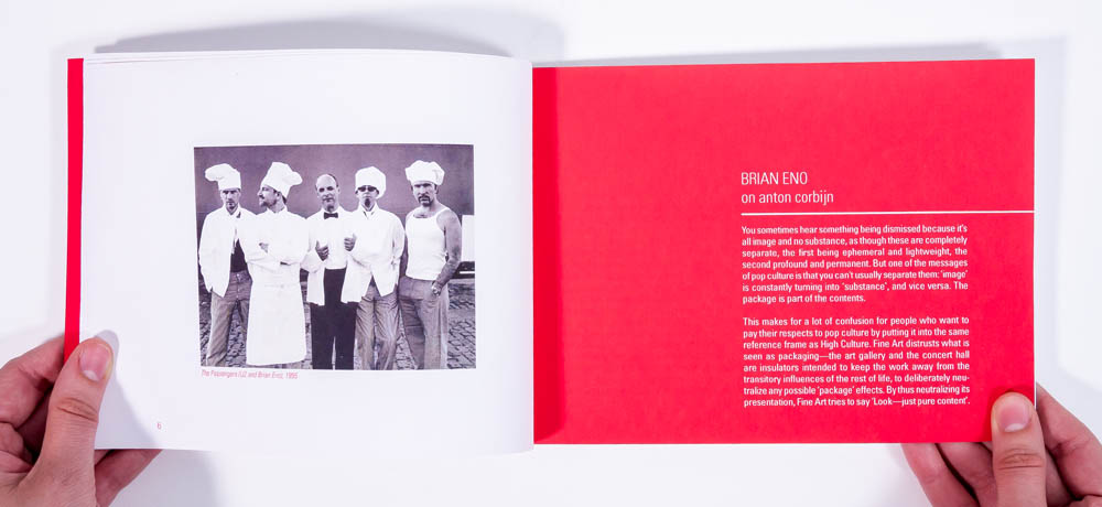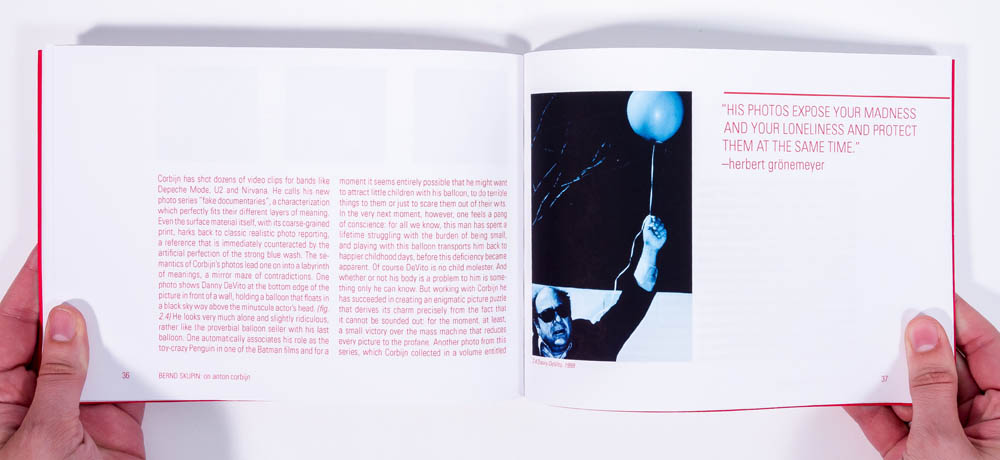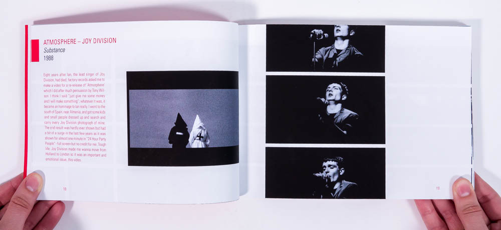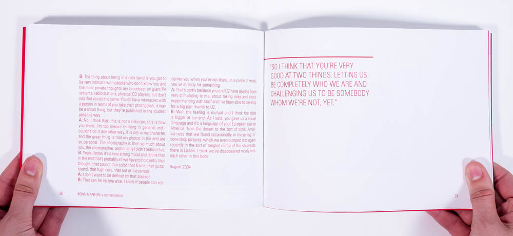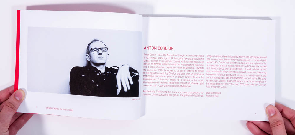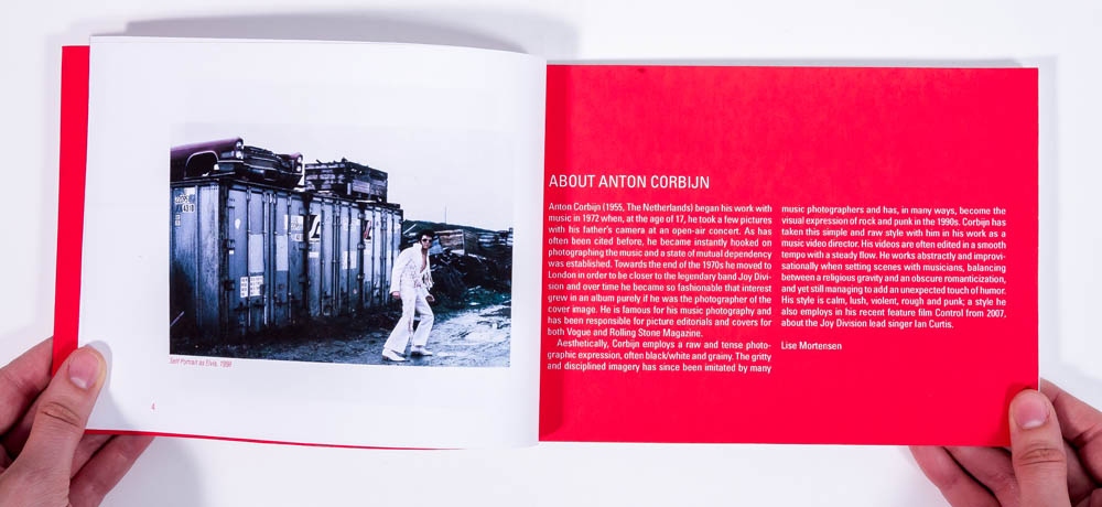 The books I have of Anton Corbijn's work all feature his own handwritten commentary, which gives great insight into his own process and personality. Since this set of books was meant to be more about collaboration, I chose to use conversations and essays with the musicians he works with as the text instead of his own thoughts alone. Having the text in a separate book allowed me to focus on the imagery alone in the other two books.