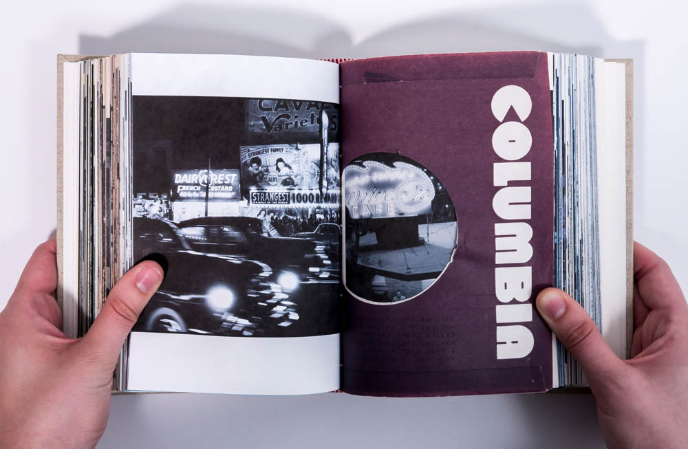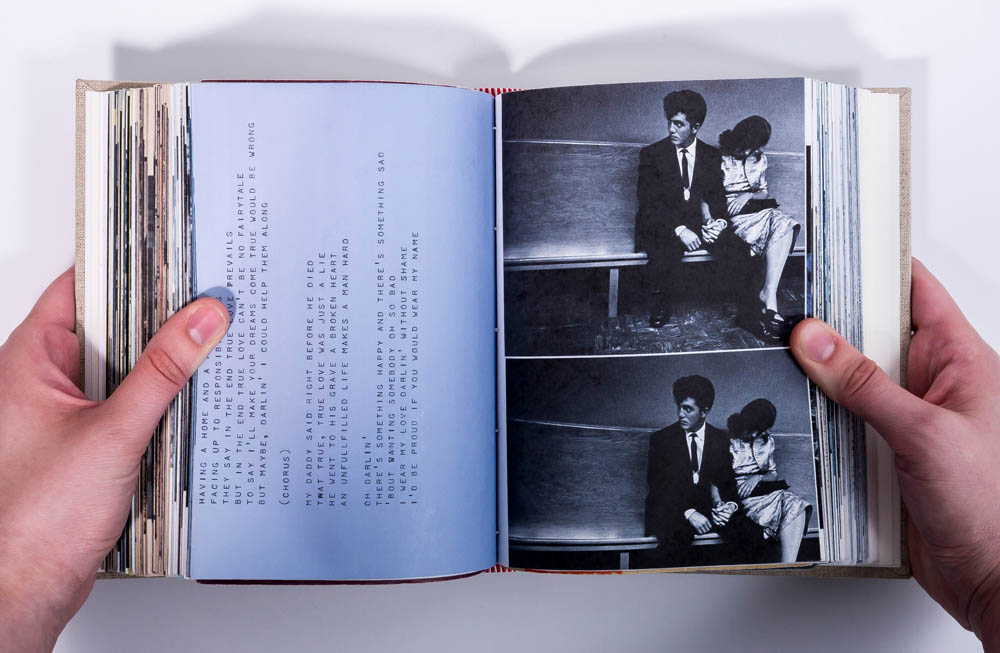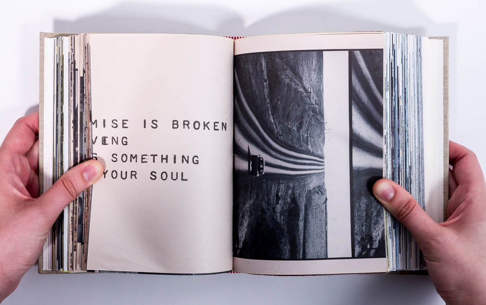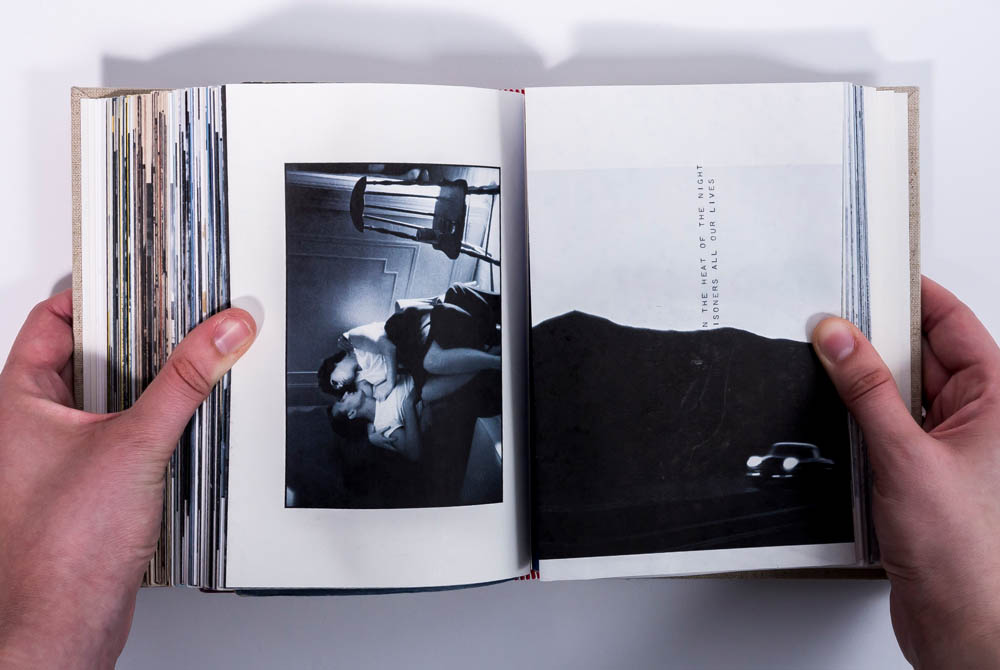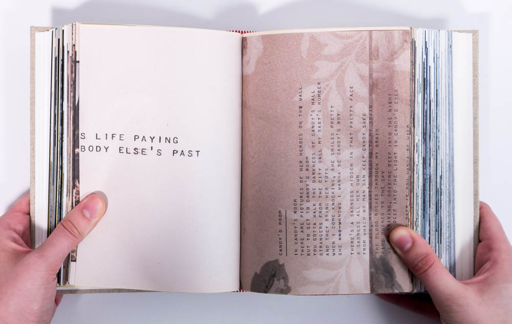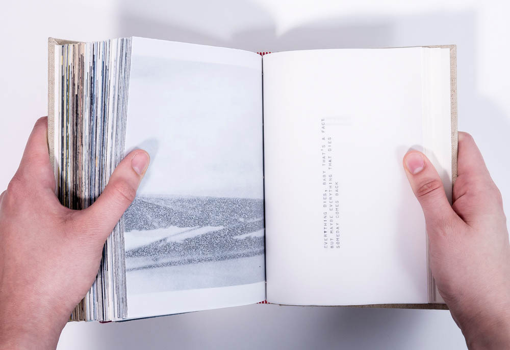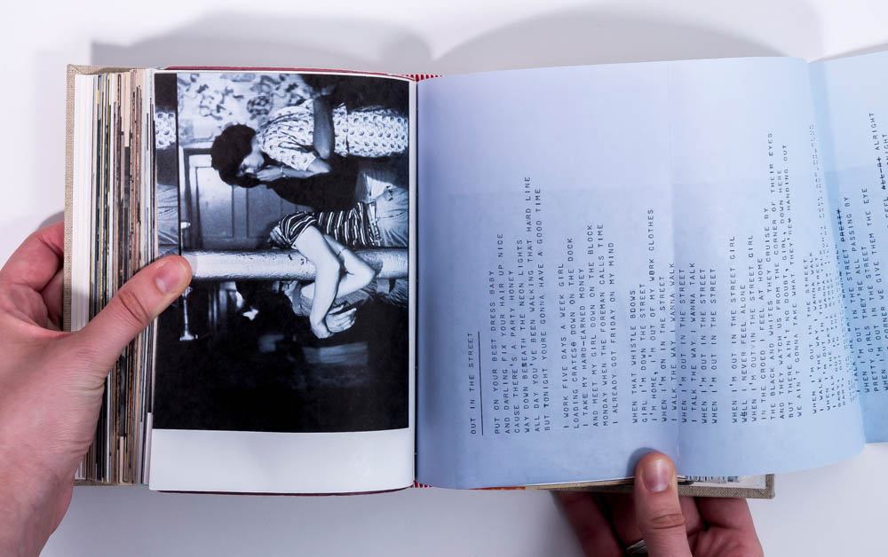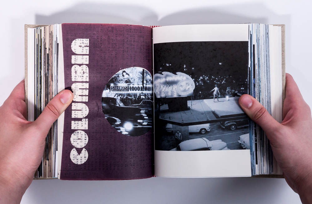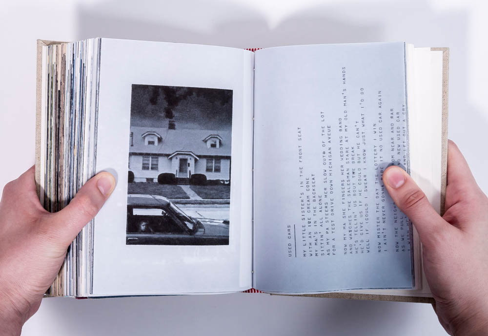 This book is a visual and emotional interpretation of the four albums Bruce Springsteen made from 1975 to 1982: Born To Run (1975), Darkness On The Edge Of Town (1978), The River (1980), and Nebraska (1982). Springsteen made each of these albums to build thematically on the previous one, carrying similar characters through emotional landscapes that reflect his own struggle to find a life worth living and his determination to give voice to those who were losing that fight. Materiality was a key part of the book’s design. The lyrics throughout the book were typed on my dad’s old typewriter, and assembled page by page which freed the layout to be more organic. The paper stock, image choice, and tone change with each album, with a key design element unique to each one.