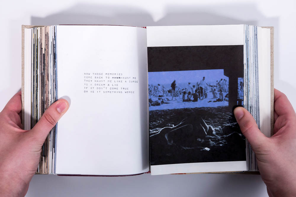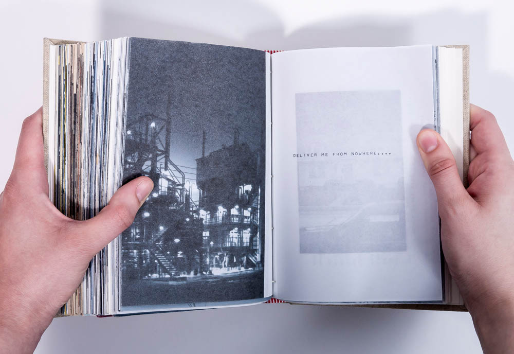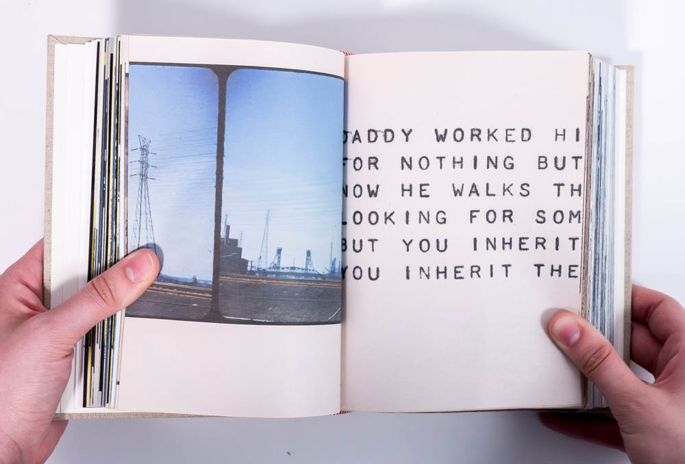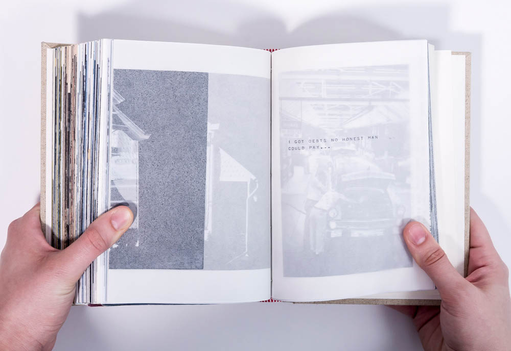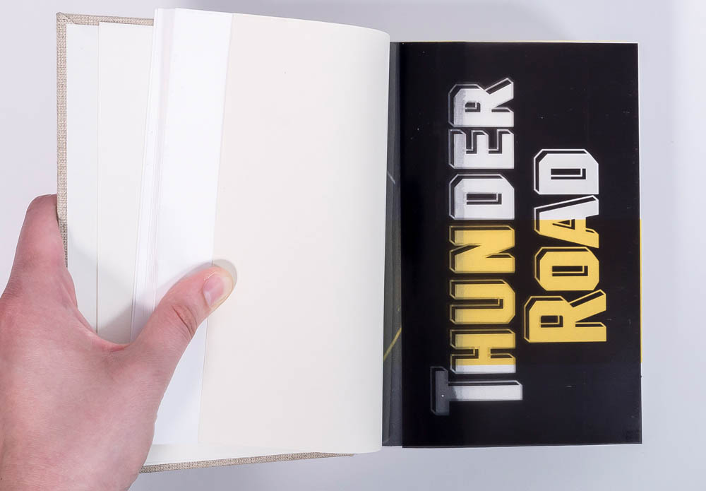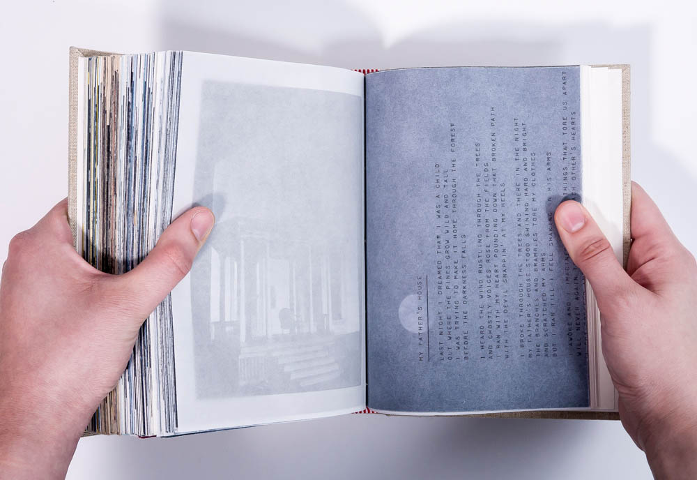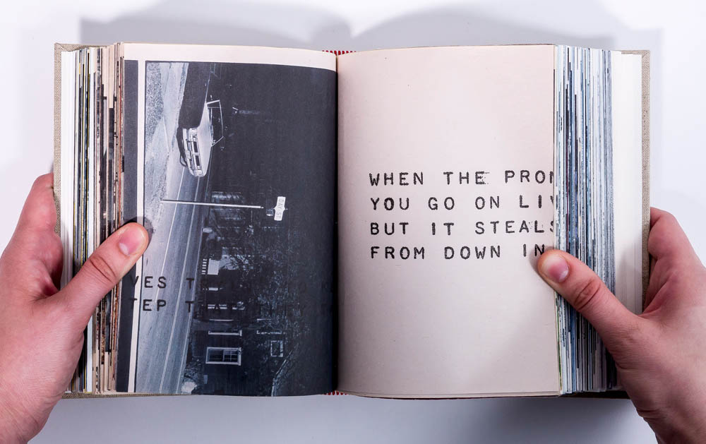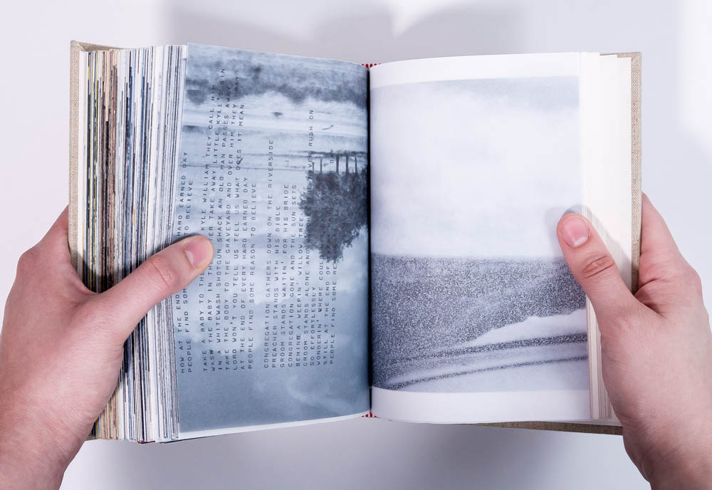 This book is a visual and emotional interpretation of the four albums Bruce Springsteen made from 1975 to 1982: Born To Run (1975), Darkness On The Edge Of Town (1978), The River (1980), and Nebraska (1982). Springsteen made each of these albums to build thematically on the previous one, carrying similar characters through emotional landscapes that reflect his own struggle to find a life worth living and his determination to give voice to those who were losing that fight. Materiality was a key part of the book’s design. The lyrics throughout the book were typed on my dad’s old typewriter, and assembled page by page which freed the layout to be more organic. The paper stock, image choice, and tone change with each album, with a key design element unique to each one.